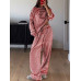 Women's Solid Color Minimalist Striped Pajama Set with Dual-Pocket Adjustable Drawstring Long Trousers