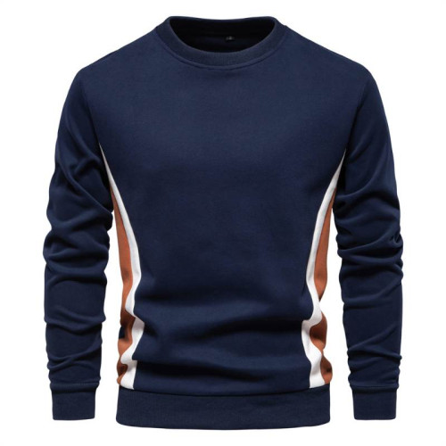 Autumn new men's long sleeved patchwork hoodie, foreign trade men's casual slim fit round neck sports pullover