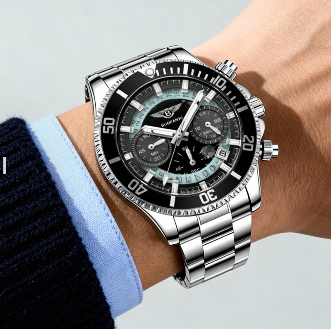 Men's Mechanical Chronograph Watch - Stainless Steel Bracelet Wristwatch for Business