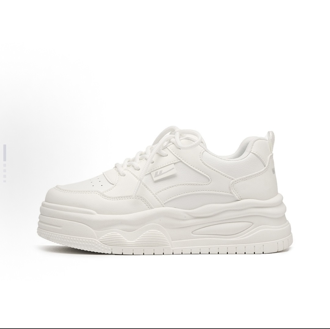 Women's All-White Platform Sneakers - Chunky Sole Casual Shoes for Daily Wear